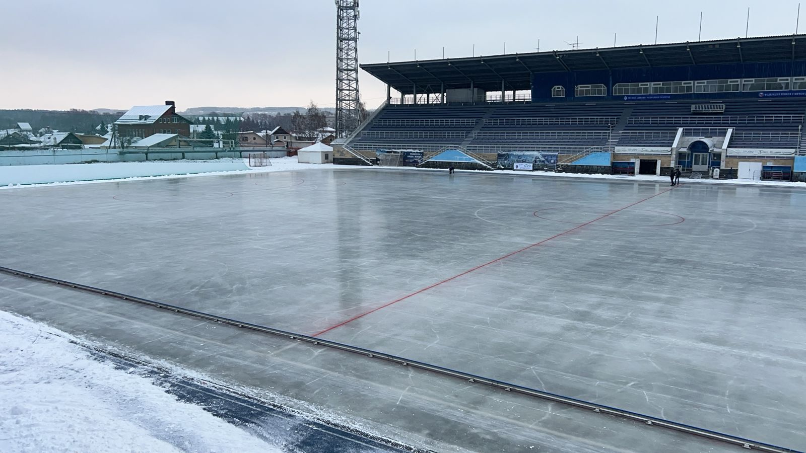 В рамках капремонта был проведен комплекс работ: замена трубной системы охлаждения поля с сопутствующими инженерными сетями, замена газона с подстилающими слоями и дренажем, гидроизоляция трибун с заменой деревянного настила, гидроизоляция и утепление кровли, монтаж и подключение табло, монтаж технического оборудования (в том числе ворота, флажки, флагштоки).