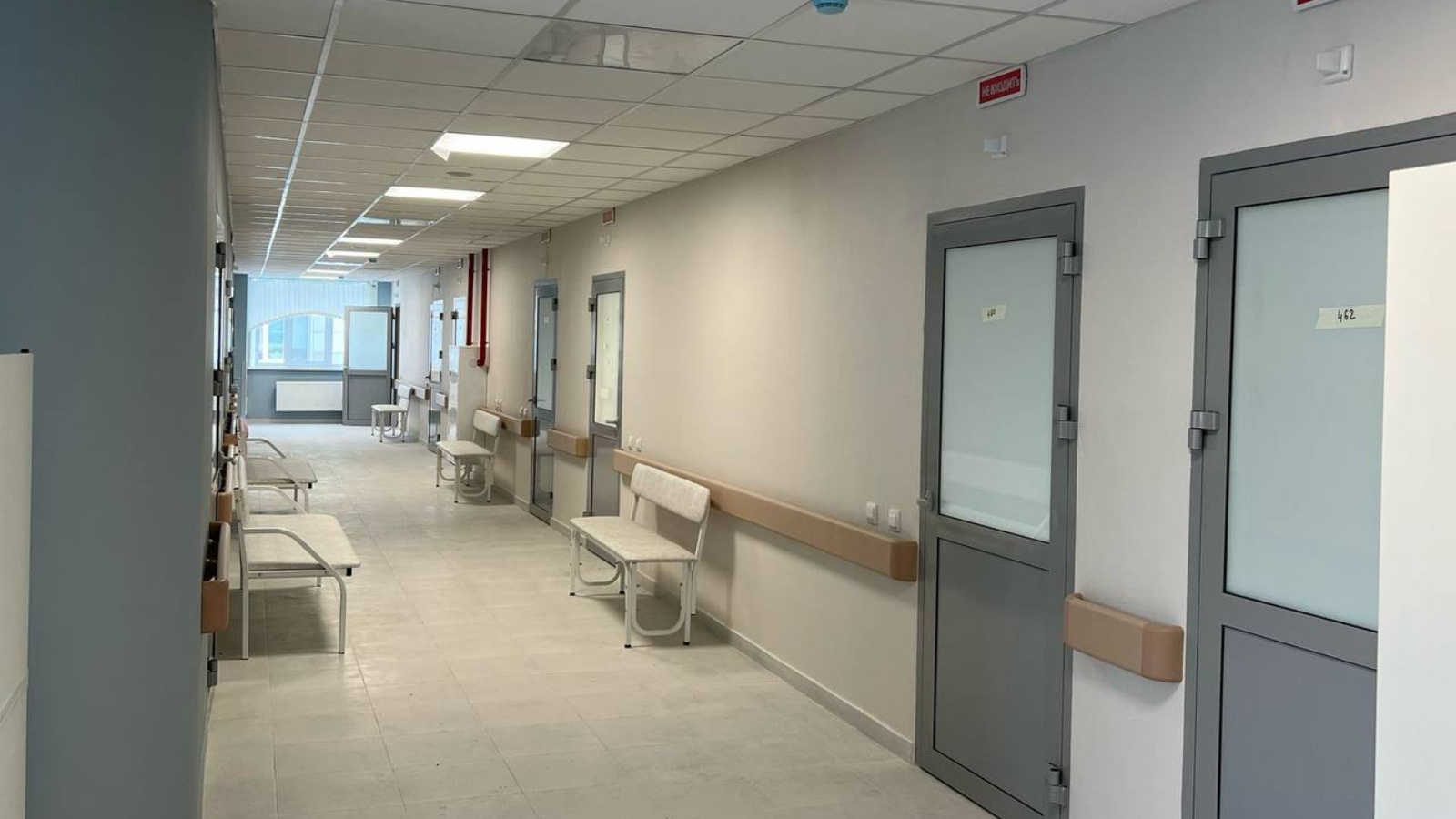 Помещения стационара левого крыла полностью обновлены – в четырехэтажном здании проведены внутренние отделочные работы, заменены окна и двери, заменены внутренние инженерные сети (отопление, вентиляция, водоснабжение, электроснабжение, канализация), проведен ремонт слаботочных сетей, сетей медгазов, установлено новое медицинское оборудование. Сейчас на объекте ведется поставка и установка мебели.