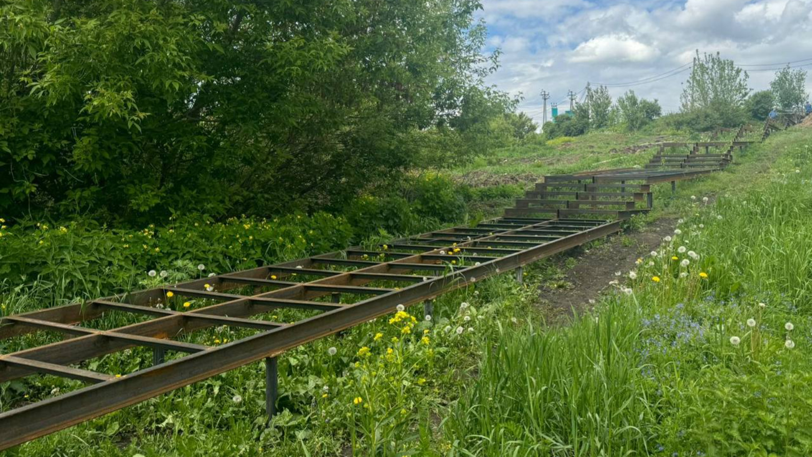 Площадь благоустройства в этом году составляет 976 квадратных метров. На объекте выполнены земляные работы, монтаж винтовых свай, ведется устройство металлоконструкции, устройство настила. Работы на объекте завершены на 40% от общего объема запланированных работ.