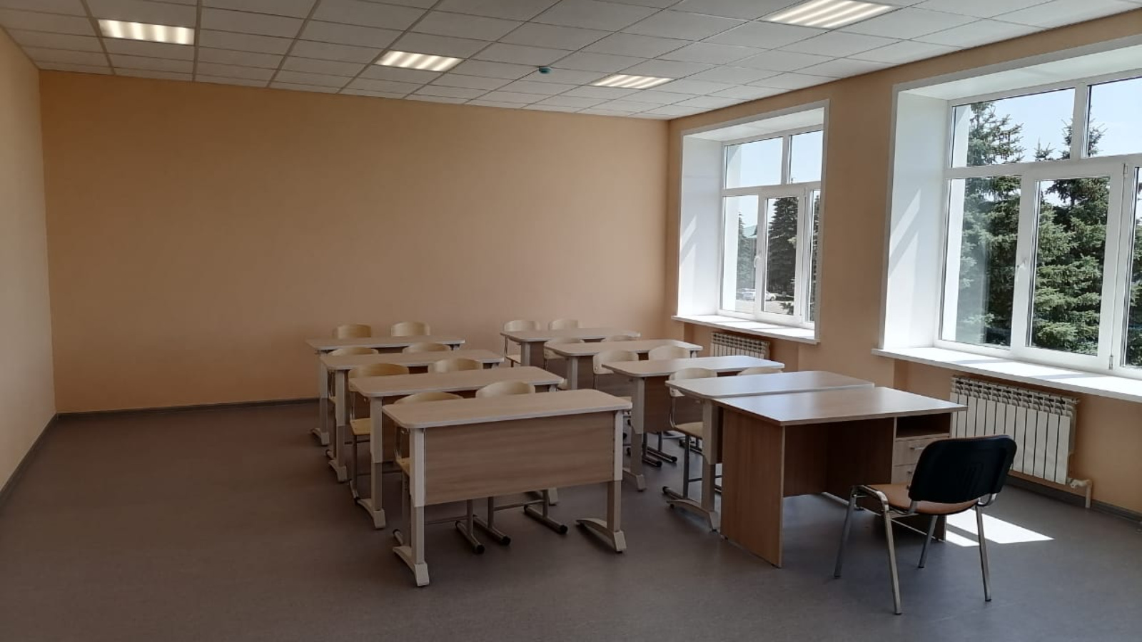 В рамках капремонта на объекте отремонтировано фойе на первом этаже, коридор и учебные классы на втором этаже здания. Проведены электромонтажные работы, отделочные работы, отремонтированы внутренние инженерные сети, проведена замена окон и дверей. На сегодняшний день работы на объекте завершены, ведется поставка оборудования.