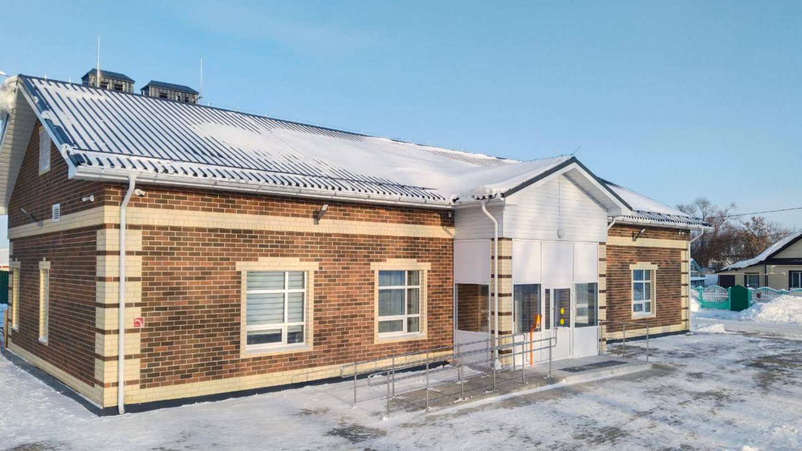 Построенное здание одноэтажное, общей площадью 346 кв.м. Внутри расположился просторный холл, современный актовый зал, библиотека, гримерная, административные кабинеты, санузлы, в том числе для маломобильных групп населения, электрощитовое помещение.