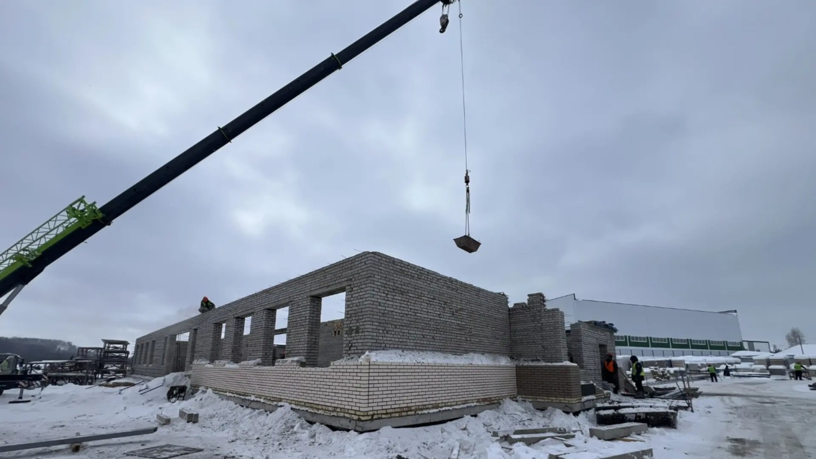 На сегодняшний день на объекте выполняется кирпичная кладка здания.