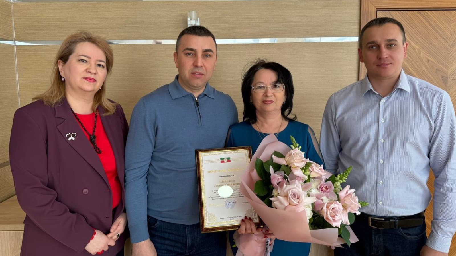 С теплыми пожеланиями Лидию Камиловну поздравил директор Главинвестстроя РТ Ильнар Хафизов и вручил почетную грамоту за добросовестный, многолетний труд.